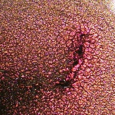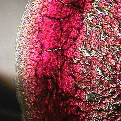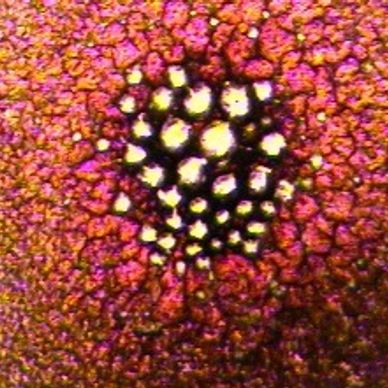 Liver Stress Appear as black circles around protein pools slightly off center. Perceived to be from toxicity not being removed effectively. Causes are Tylenol, Advil, Aleve, Medication, Hepatitis, and even novocaine. Image is someone with medically diagnosed Hepatitis.