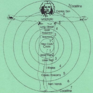 Where the pools or lakes are in the drop indicates where it is in the body. If the pool is in the center of the drop then the challenge is in the middle of the body. If it is in the edge then its an extremity. If it goes all the way around it is a system. Some of what can be observed are;