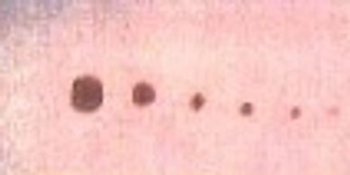 Dried Blood Analysis shows a lifetime of challenges. What we do with the dried blood is let it sit on the finger for 30 seconds then pick it up in a series of drops. The bigger drops show things that are on the surface, or recent and as we go farther down we can see things over a life time. Just because we see something doesn't mean you will experience it. It just shows a weakened area in the body.